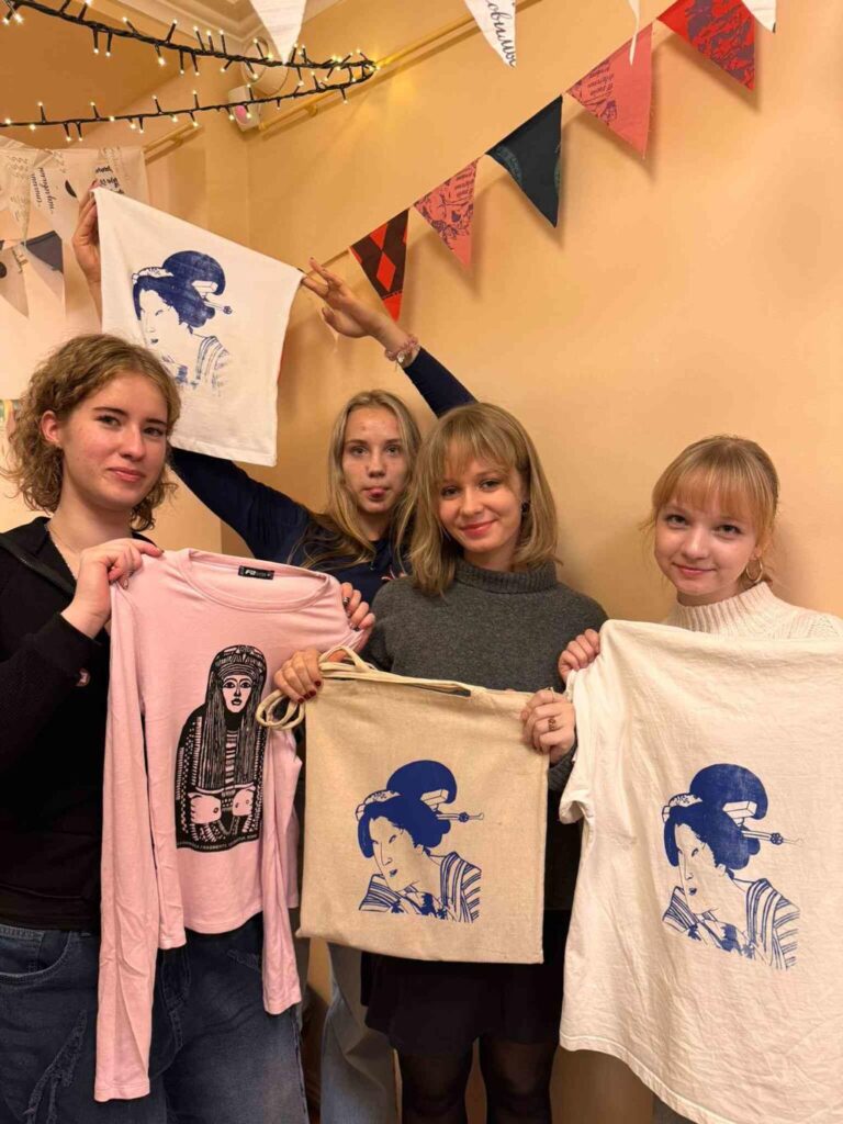 12.novembrī 11.e klase devās uz Rīgas Biržu, lai piedalītos nodarbībā “Mākslas nospiedumi”! Tur mēs ne tikai uzzinājām, kāds ir sietspiedes apdrukas process, bet arī paši to izmēģinājām un radījām unikālus dizainus uz saviem krekliem, somām vai citiem kokvilnas audumiem, ko katrs pats bija piemeklējis. Kopīgi bija iespēja izvēlēties 3 dizainus, kas katrs bija kādas gleznas fragments, un krāsu.Klase tika sadalīta divās grupās: kamēr viena grupa radoši darbojās darbnīcā, otra izpētīja Rīgas Biržas ekspozīcijas, kur varēja aplūkot mākslu no dažādām pasaules vietām. Pēc tam grupas samainījās. Paldies Rīgas Biržas darbiniekiem par nodarbības novadīšanu, mums ļoti patika!