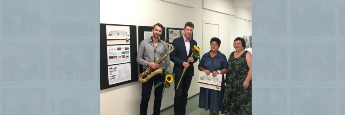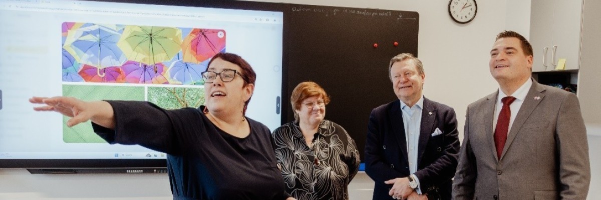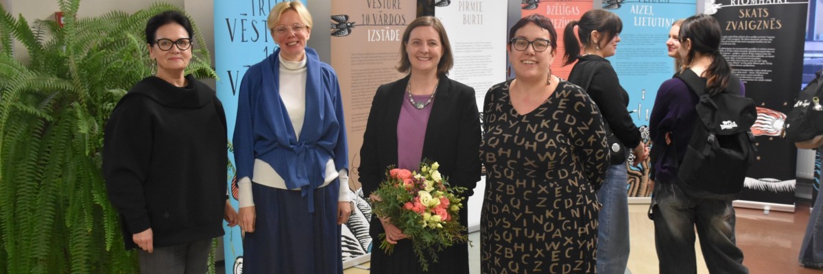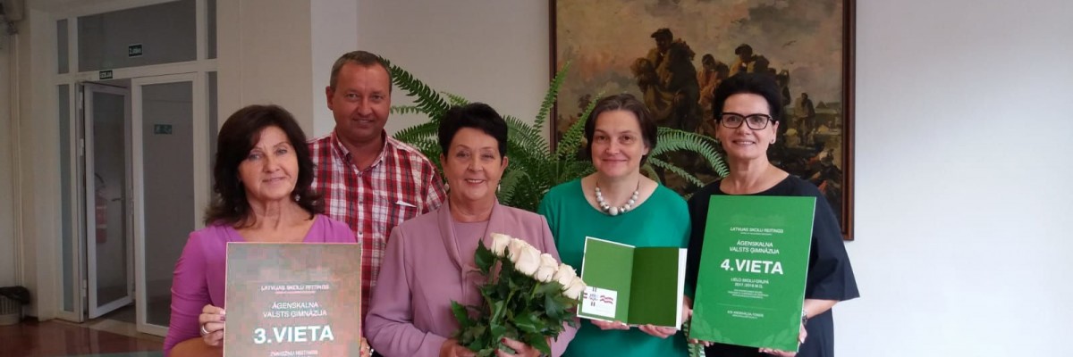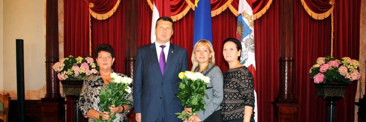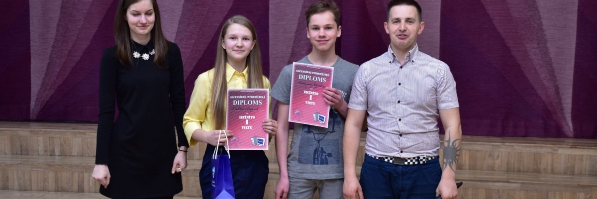 Skolotāji Ramona Ķiesnere, Ilze Kruglauža, Mārtiņš Eglīte un skolēni Žanete Petruņina un Emīls Vilde ar