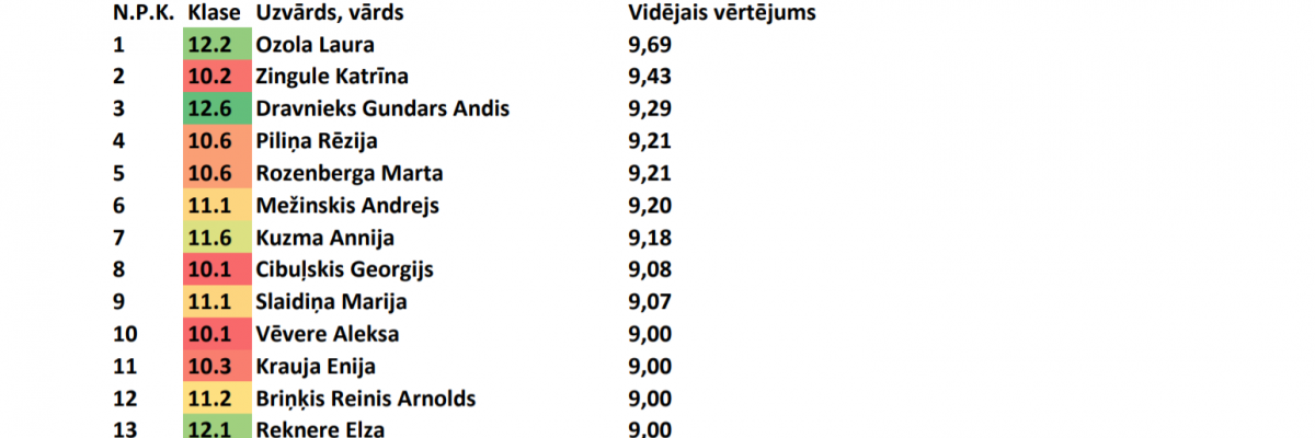 Apsveicam skolēnus, kuri 1. semestrī mācījušies uz 8, 9, 10 ballēm visos mācību priekšmetos!
